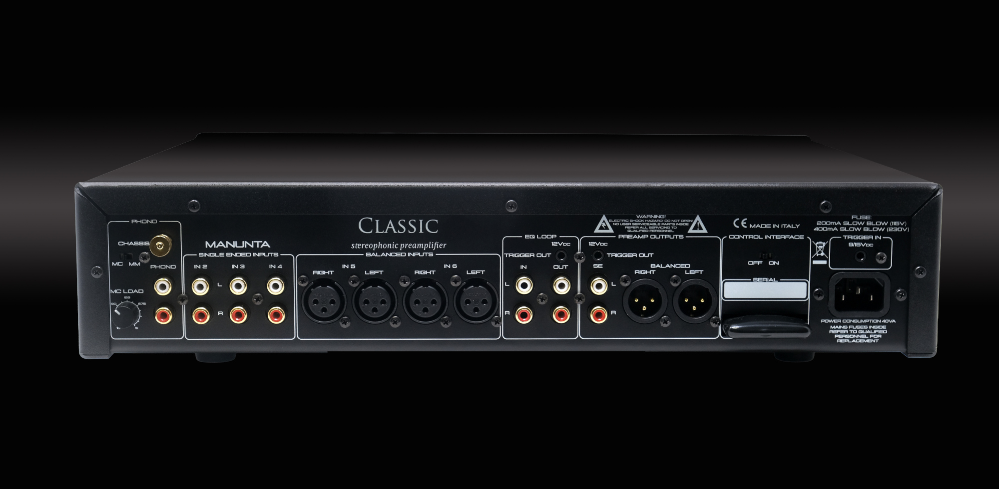 Il Classic Preamplifier è progettato per la musica. Il suo circuito di amplificazione a componenti discreti è strutturato in modo da assecondare il comportamento dinamico del programma musicale. L’uscita bilanciata è accoppiata tramite trasformatori di uscita ad elevate prestazioni che rendono efficace e performante il pilotaggio di diffusori attivi anche con collegamenti di rilevante lunghezza. In questo modo è possibile posizionare i diffusori lontano dal resto dell’impianto.